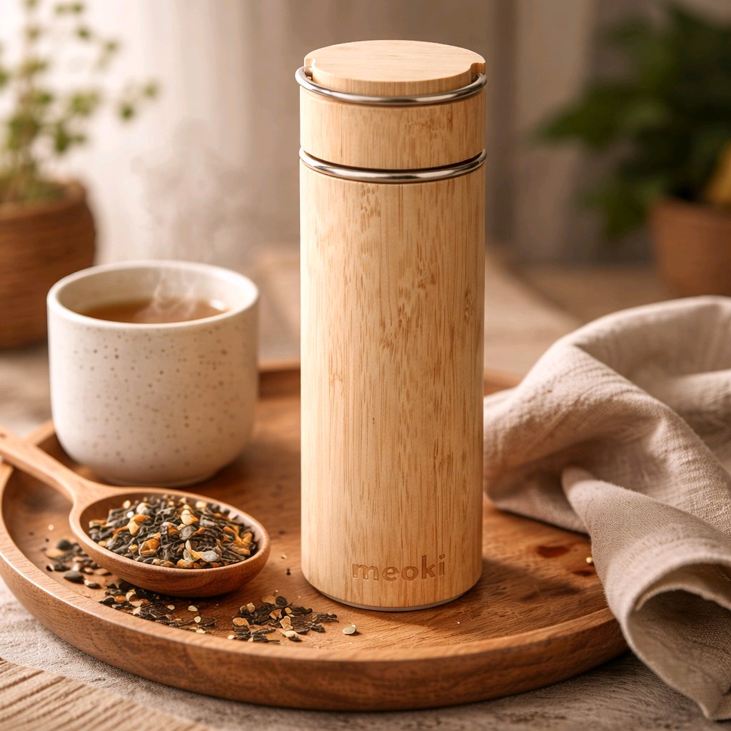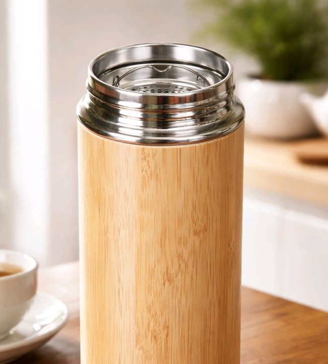 Pricing note: Crafted with a natural bamboo exterior and stainless steel interior. Price reflects durable materials, reusable design, and included tea strainer.