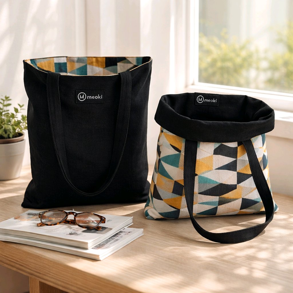 Designed for modern, conscious living, this reversible polyester cotton bag by Meoki blends everyday functionality with timeless style. Thoughtfully crafted from a durable polyester-cotton blend, it offers the perfect balance of strength, softness, and long-lasting use—making it an ideal companion for shopping, work, or daily errands.