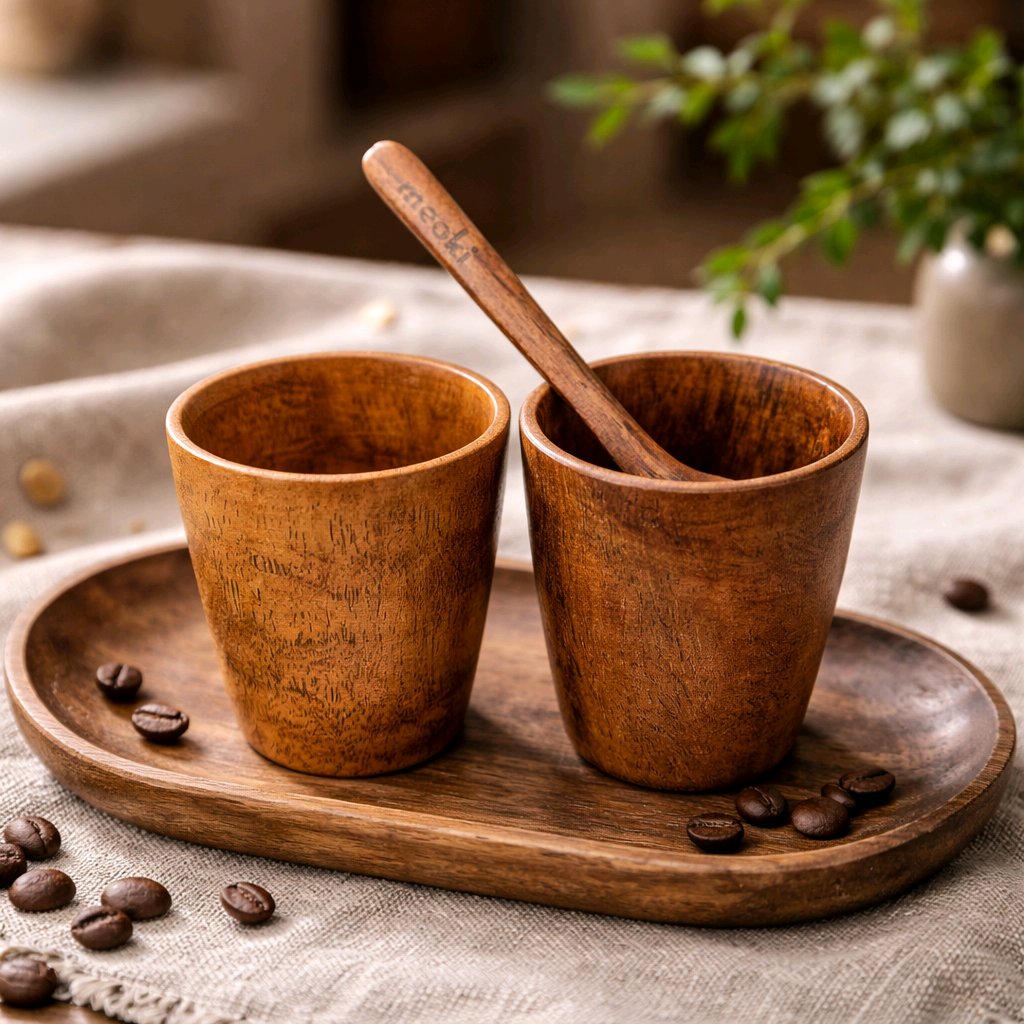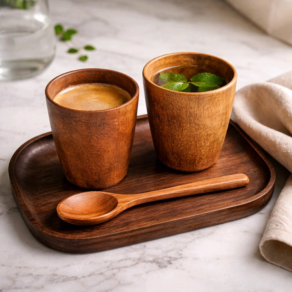 Handcrafted Acacia wooden cup set made for everyday rituals and mindful moments.