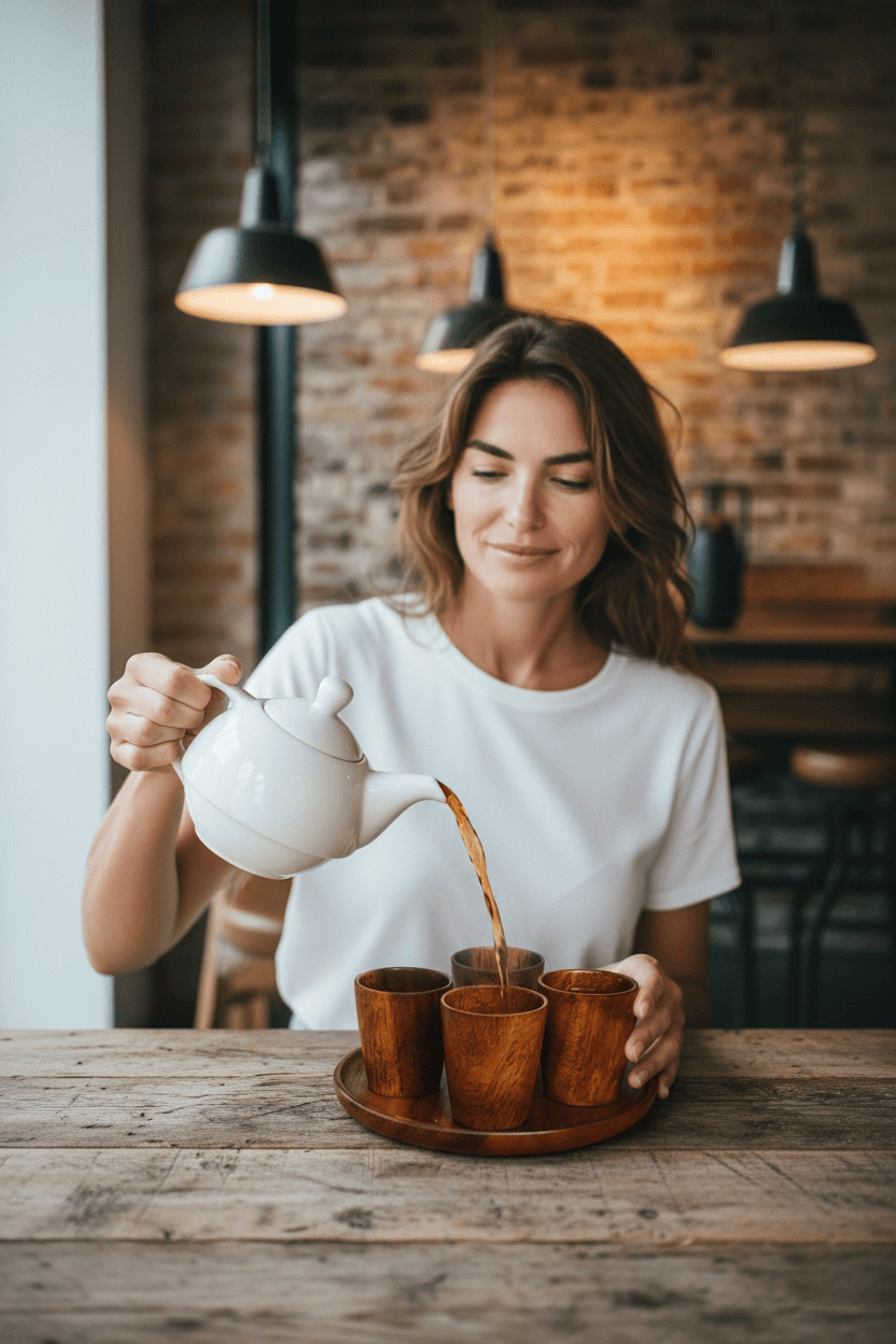 At the same time, the matching wooden spoon adds a thoughtful detail that makes serving tea, coffee, or herbal drinks feel special.