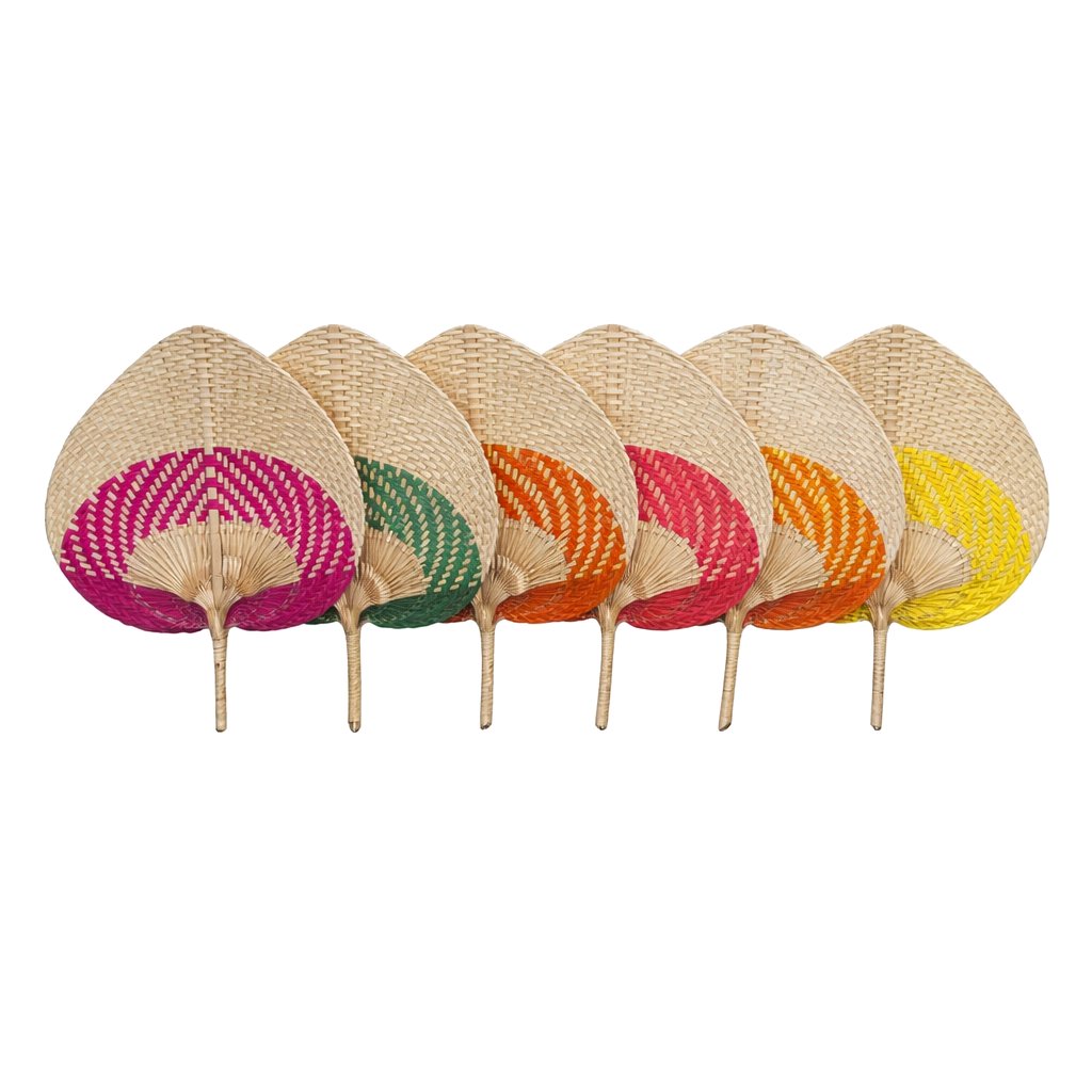 Pricing note: This handcrafted palm hand fan is available in six different woven color accents. If you have a preferred color, please contact us before placing your order to check availability.