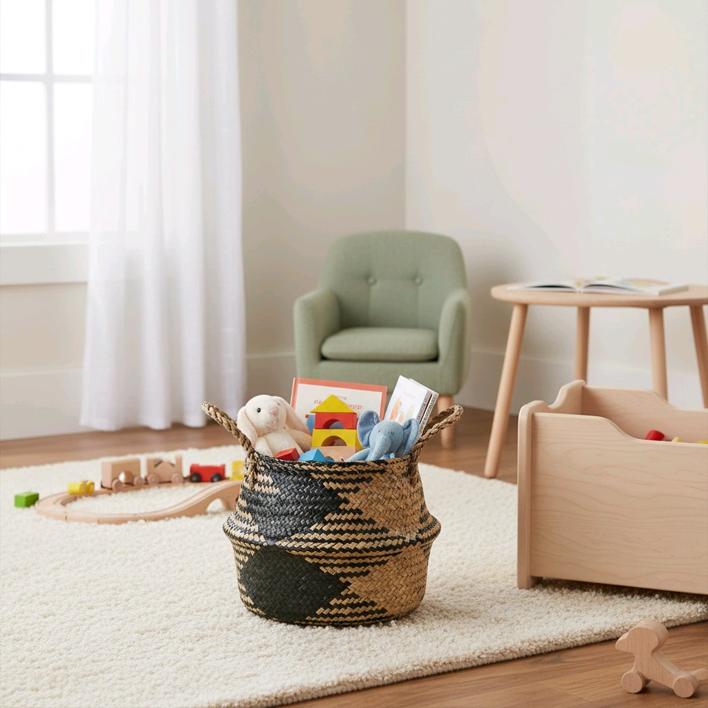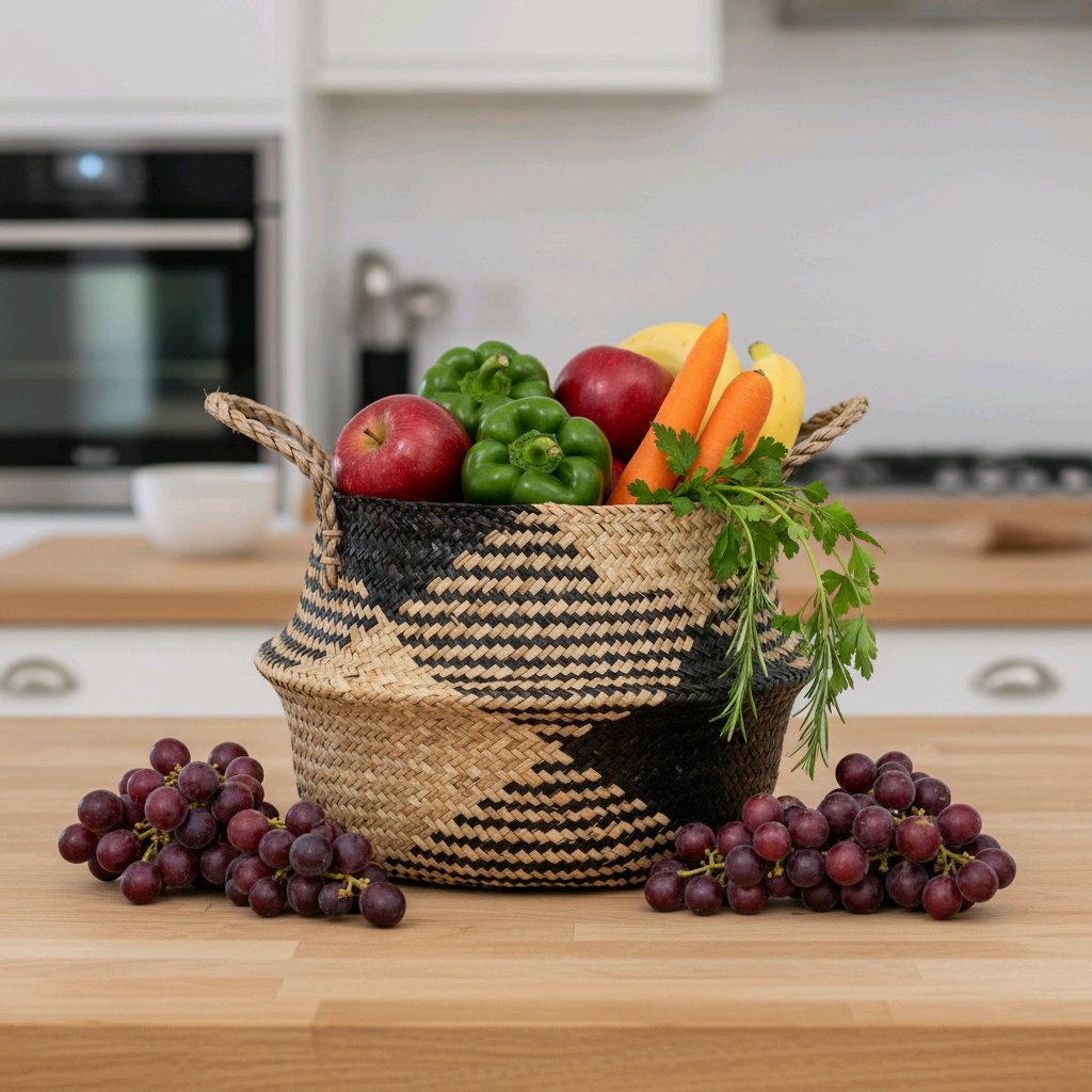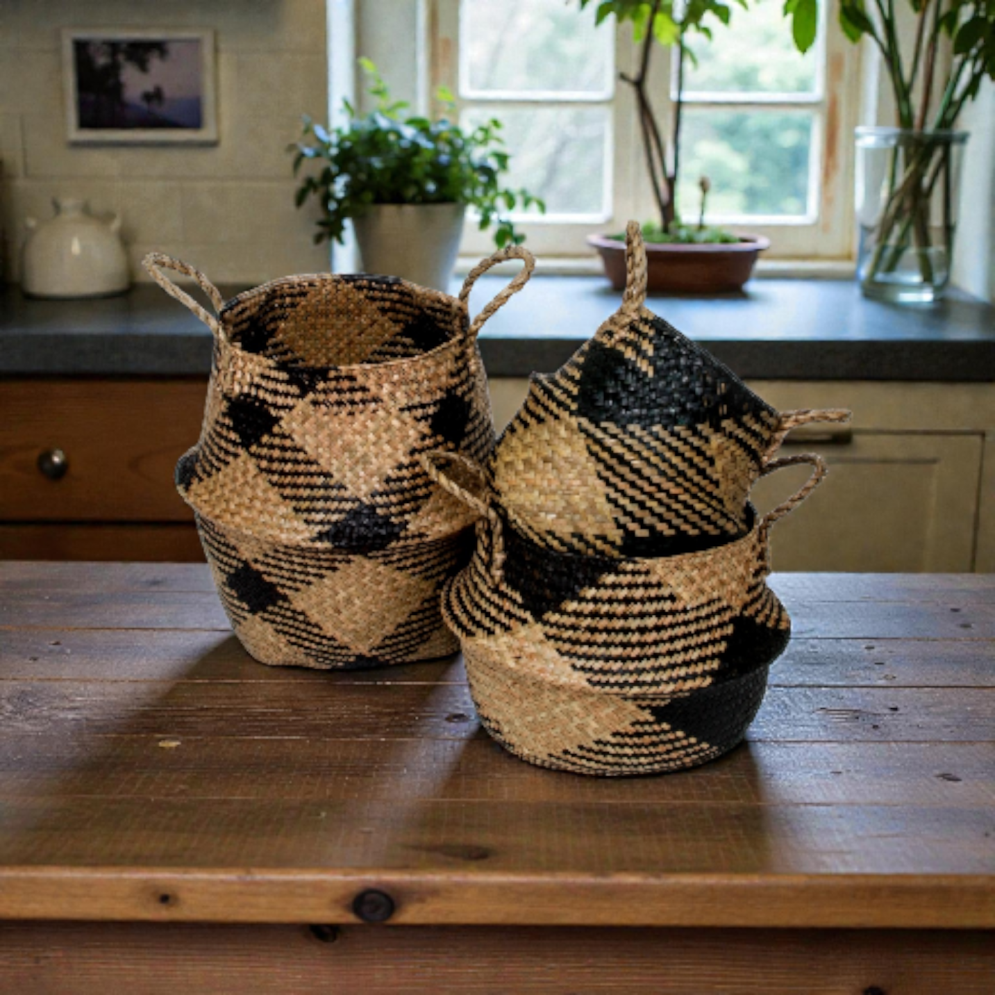 A handwoven buri palm belly basket designed for natural home storage. Foldable, eco-friendly, and handmade—ideal for organizing blankets, laundry, toys, or everyday essentials.
