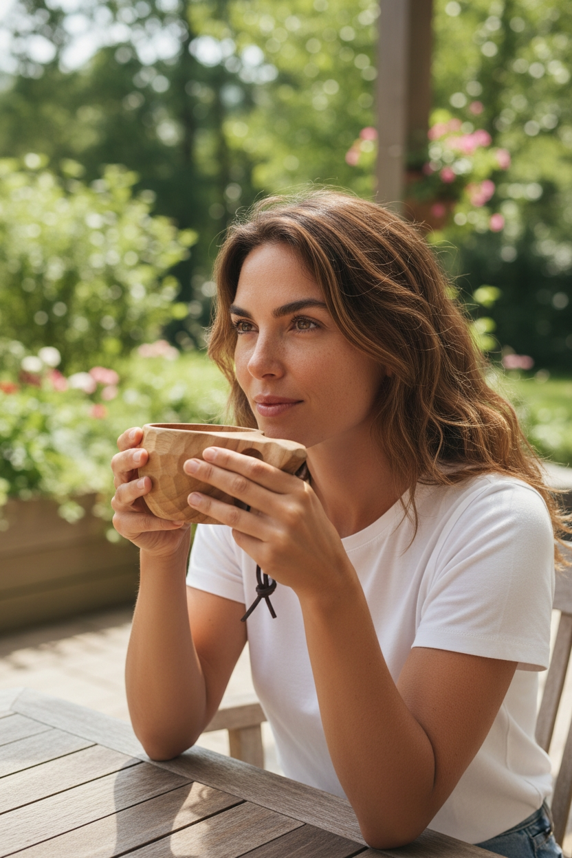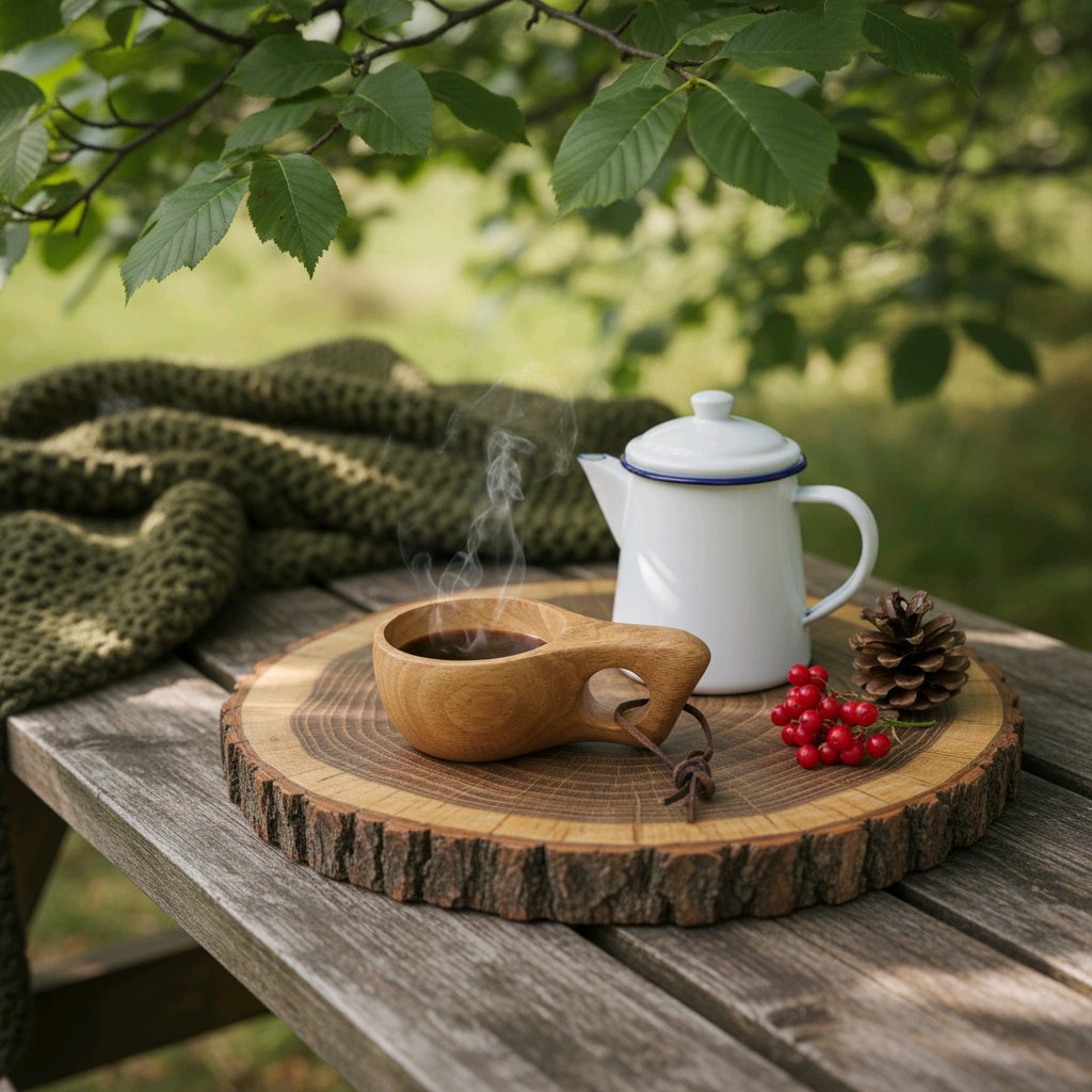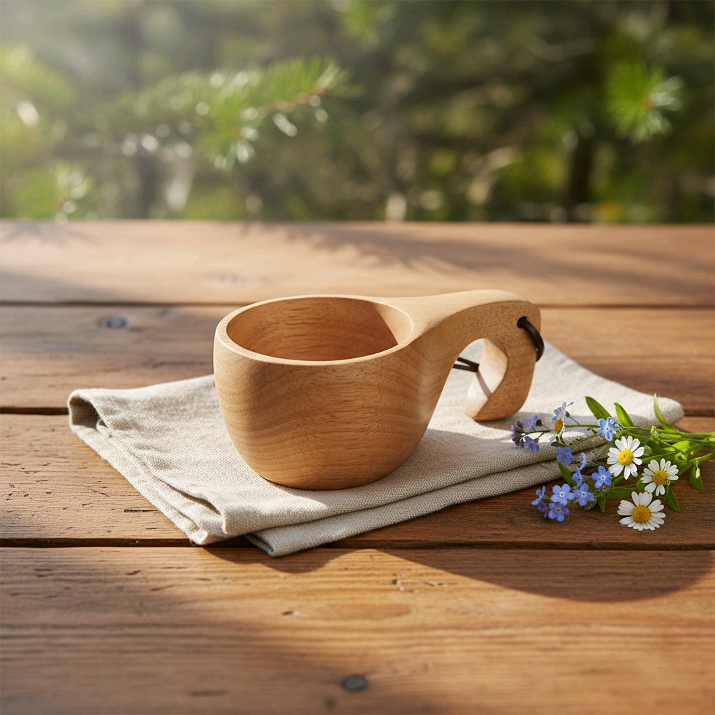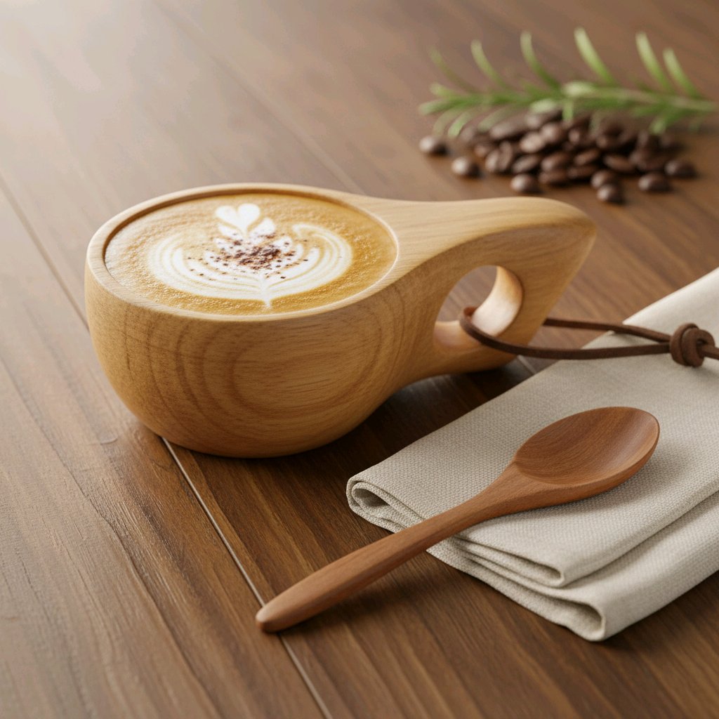 Each mug is handcrafted to highlight the natural grain of the wood, making every piece unique. Lightweight yet durable, it is ideal for enjoying coffee, tea, matcha, herbal infusions, or cold beverages — whether at home, in the office, or surrounded by nature.